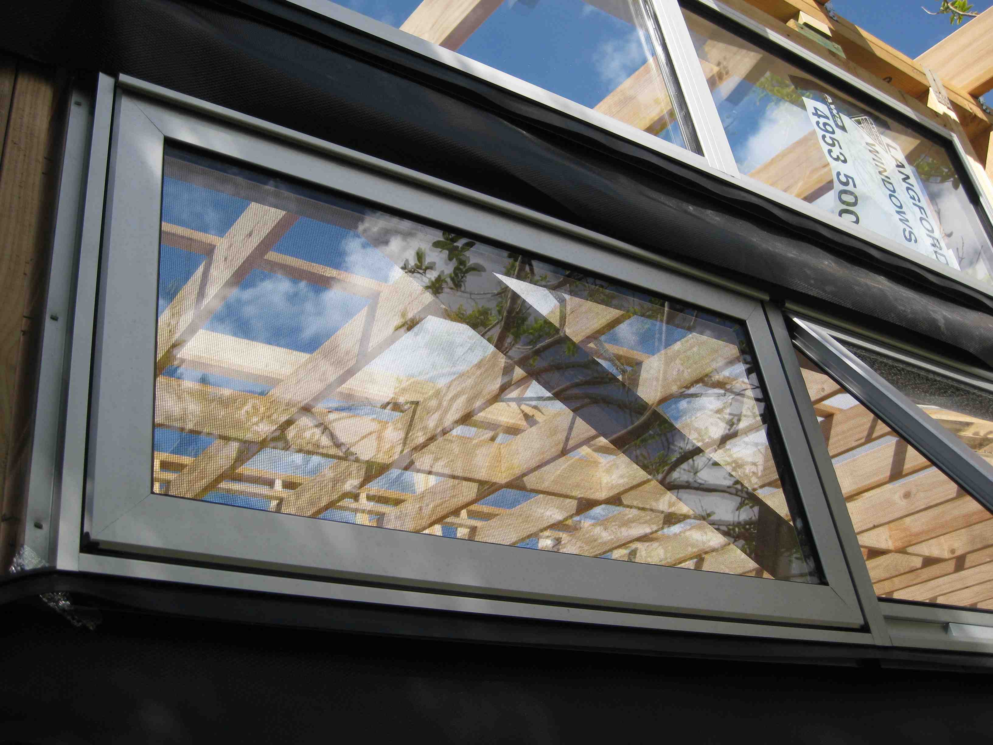 I initially went back to Fin Aluminium, who I had used for the windows on the garage, after realising that my dream of timber framed windows and doors was just not going to happen. I went through the whole sizing and quoting process, which took a week or so, and then asked the question ‘Okay, how much to upgrade to double glazing?’. ‘We don’t do double glazing’ was the reply, which meant I had to start all over again. I settled on a local firm, Langford Windows, who gave me a quote that included the options of single glaze low-e glass as well as double glazing, powered opening of clerestory windows, flyscreens and one security screen, The total with the options came to $31,000 – the upgrade to double glazing being only an additional $3000. (We later added a huge matching front door double glazed unit with sidelights, for another $4,500). All in all, it took a month from my first visit until all details were finalised enough for them to go ahead with production.