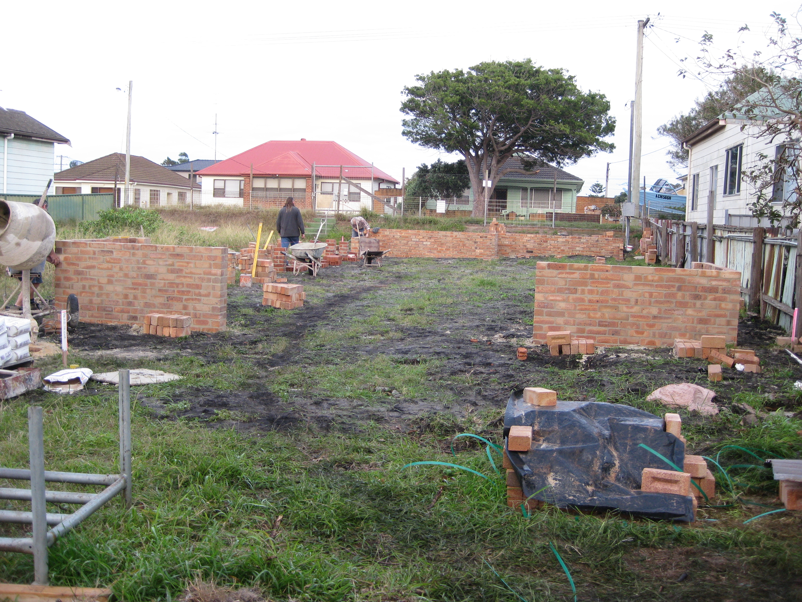 In late June the brickies came in to do the 80+ piers and retaining walls.